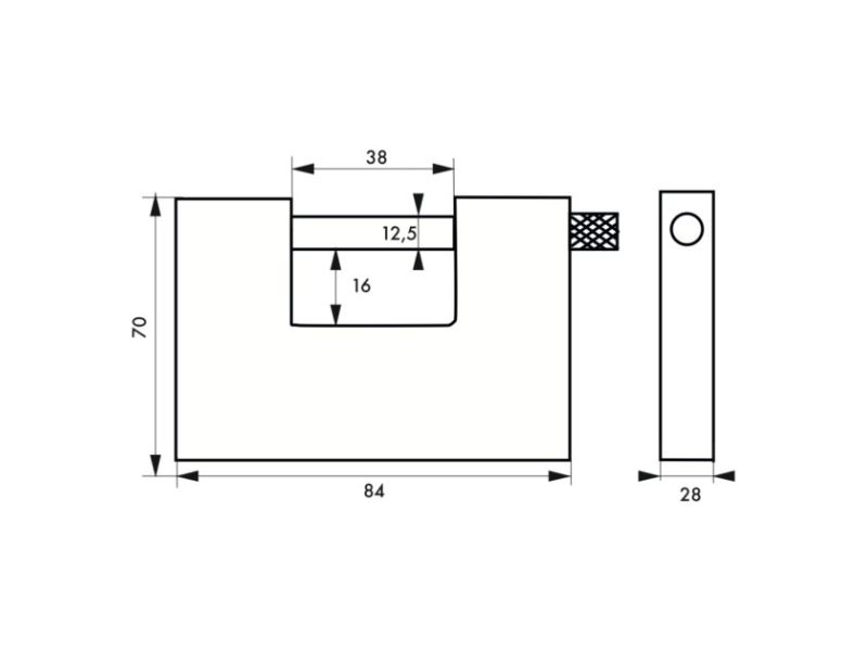 Dimensions : 84 (L) × 70 (l) × 28 mm (Ep)